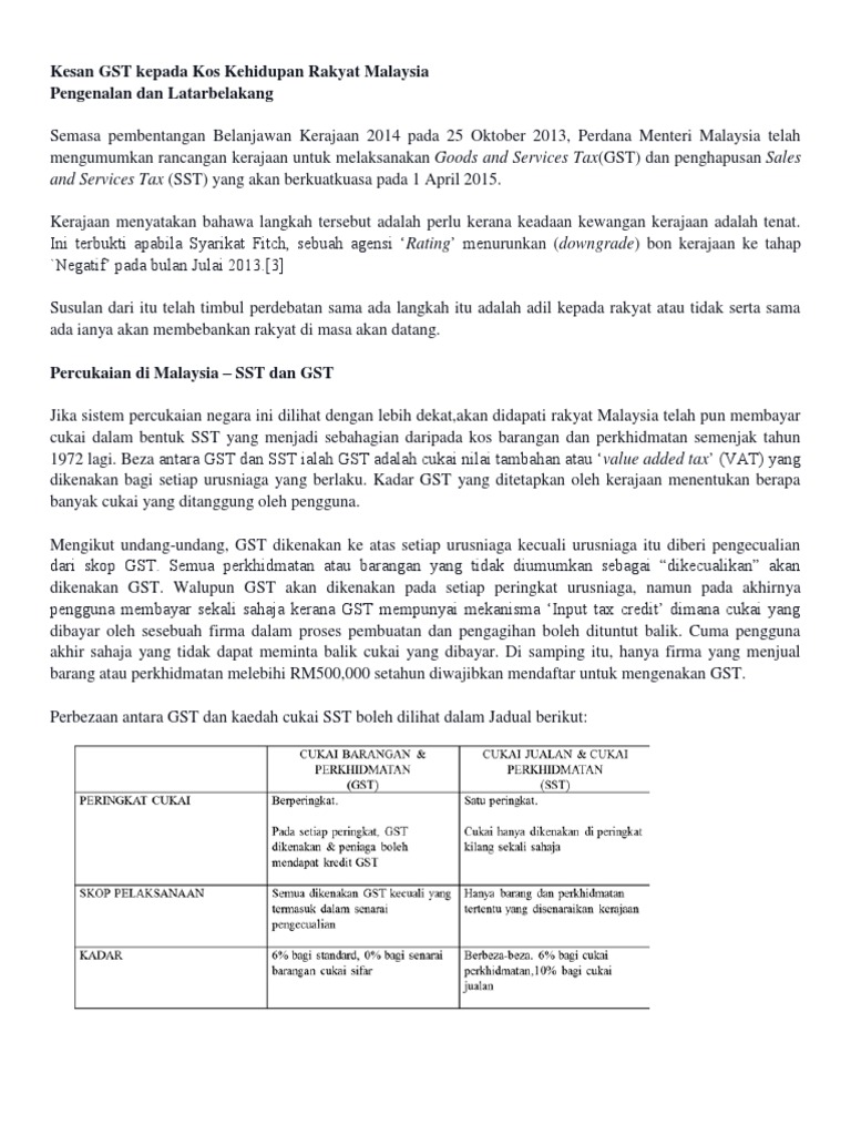 Key messages sst 2.0 the comeback kid sst will be reintroduced on 1 september 2018 to replace gst proposed sales tax (10%, 5% and a specific rate proposed sales tax (10%, 5% and a specific rate for petroleum) and 6% for service tax. Undian itu mula dibuka sejak 9.17 pagi di seramai 3,388 orang responden atau 44 peratus faham perbezaan antara sst dan gst, sementara 56 peratus lagi (4,312) masih tidak memahaminya. P a g e 4 | 27 2. Cukai sst adalah cukai satu aras yang mana cukai ini hanya dikenakan kepada pengilang sahaja dan tidak. This is not correct and is not.